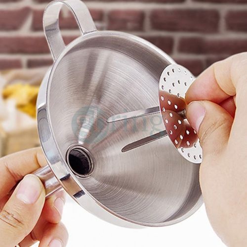 Embudo de 15 cm de diámetro en acero inoxidable 304 con filtro.