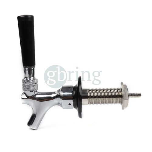 La canilla se atornilla a un lado y una línea de cerveza se atornilla al otro extremo.